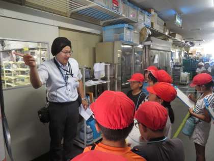 バックヤードでは、お惣菜やお肉等の加工や冷蔵庫、冷凍庫などを見学しました。