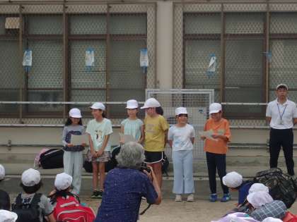 出発式が始まる前まで少し雨が降りそうな空模様でしたが、みんなが運動場に出たとたん太陽が出て、無事に出発式を終えることができました。