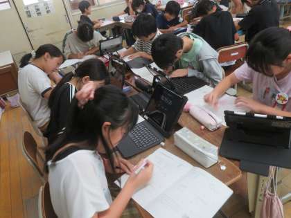 単元のまとめの学習では、自分の力にあった問題をたくさん解きました。タイムアタック形式で速さと正確さを鍛える姿や友達と問題を出し合っている姿が見られました。