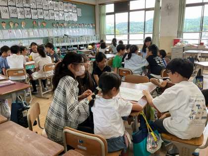 サイコロを振って進んだマスに書かれたお題に合わせて話すことで、自然と会話が生まれ、楽しく交流することができました。マスには、「好きな食べ物は?」「大人になったらどんな仕事をしてみたい?」「給食で一番好きなものは?」などの質問があり、子どもたちは自分のことを話したり、班の人の話に耳を傾けたりしていました。