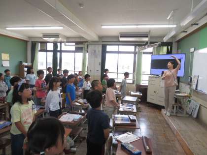 鑑賞と歌の練習をしました。繰り返し出てくる旋律や音の上がり下がりを意識して聞きました。歌では、「ふじ山」を流れるようなイメージで、盛り上がっていくように歌っていました。きれいな声が出ていました。