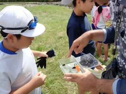 活動後,ビオトープネットワーク京都の方に見つけた生き物の名前や,どんな環境にいることが多いかなどを教えてもらいました。