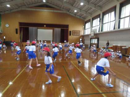 本日の体育は、運動会に向けて団体競技の「しっぽとり」を行いました。