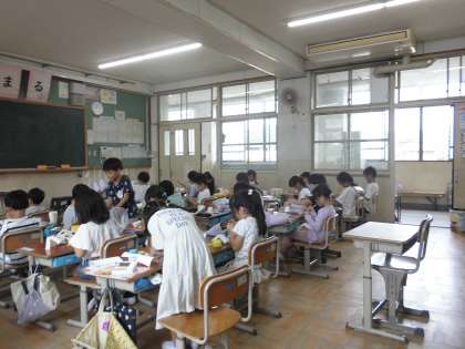紙コップを使ってぱくぱくする作品を作りました。何がぱくぱくしているかを考えて、飾りつけを頑張りました。