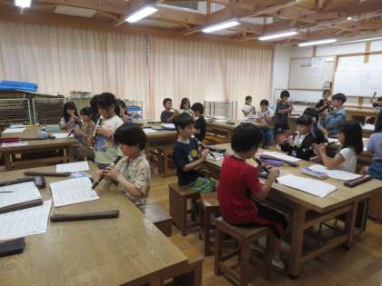 歌のテストの待ち時間にリコーダーの練習をしていました。