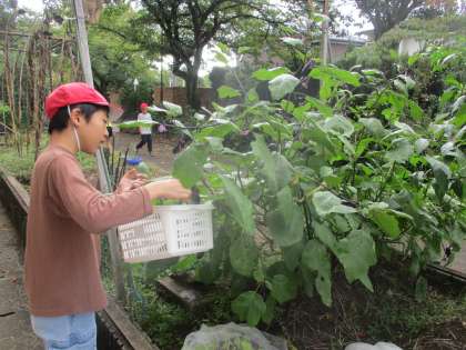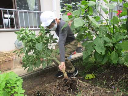 1学期に植えた夏野菜がだんだん実が小さくなってきました。冬に向けて次の野菜を植えることになっているため,ナス・ピーマンの苗を抜くことをなりました。