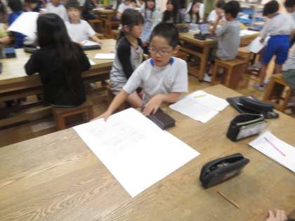 運動会のスローガンが決まり、各クラスに渡す画用紙をしっかり持って帰ってきてくれました。
