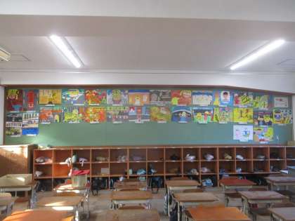 図画工作では、「言葉から思いを広げて」の学習を進めました。1組は、「お母さんの生まれた国」2組は、「世界を救うパンの缶詰」3組は、「いたいっ!がうんだ大発明」4組は、「まさきの虎」を題材に、物語を聞いて、自分が想像した登場人物や場面を絵に表しました。それぞれの子が「こんな子かな、こんな場面かな。」と思いを馳せながら思いや工夫が詰まった作品が完成しました。