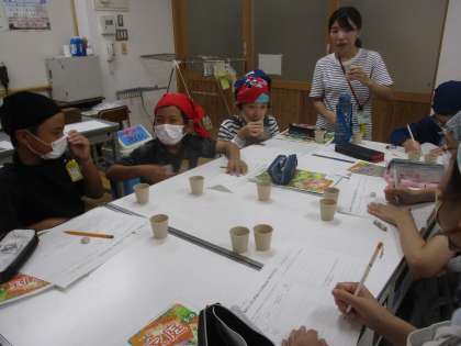 家庭科では、「食べて元気!ご飯とみそ汁」の学習を進めています。今日は、栄養教諭の先生と濱口先生に「だし」の授業をしてもらいました。昆布だし、鰹節との合わせだし、吸地の三種類のだしを飲み比べて、見た目や香り、味などを確かめました。今日学んだことを生かして、11月には、ご飯とみそ汁を自分たちで作ってみようと思います。