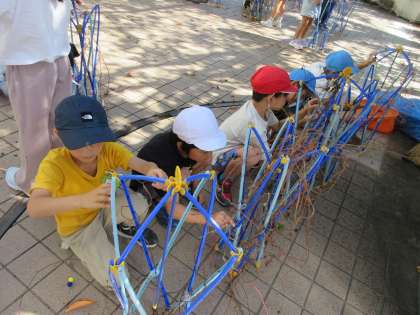 生活科で春から育ててきた朝顔のつるを使ってリースを作りました。まずは、支柱からつるを外す作業です。しっかりとお世話をしていたので、つるがしっかりと絡まっていて、なかなか大変でしたが、根気強く作業しました。