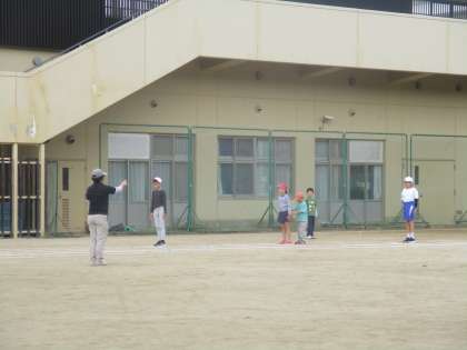 「いちについて,よーいどん!」の動き方を高学年,低学年と順番でやりました。