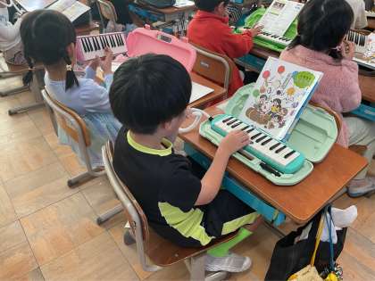 指の動かし方が難しいところがあります。でも、何回も練習し、みんなで揃えて吹くことができるようになってきました。