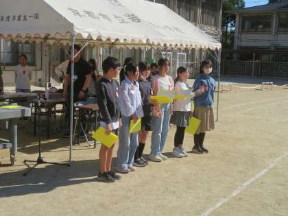 明日の運動会の司会進行を担当する放送係です。自信をもってアナウンスができるよう、最後まで頑張って練習をしていました。