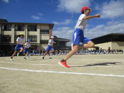 6年ぶりの全校児童参加の運動会がありました。応援団長の宣言から始まり,学年の競技や演技,エントリー種目などがありました。応援席から見える高学年の徒競走は圧巻で,6組の低学年も「頑張れー!」と応援せずにはいられないほどでした。