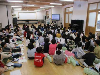 多目的室に集まって、合唱や演奏の練習をしました。