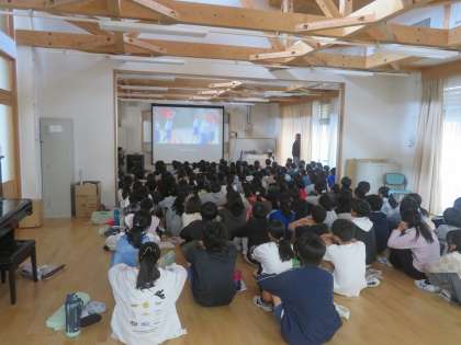 表現運動のこれまでの写真と、本番の動画をみんなで見てました。