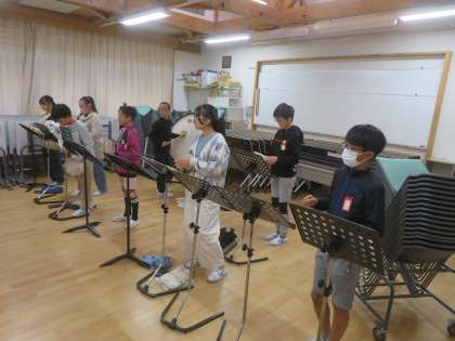 リズムキープが命の打楽器軍団です。個別練習では、なかなタイミングが取れなかったようですが、みんなで合わせると上手に演奏していました。