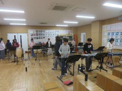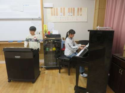 木琴・鉄琴・ピアノ・キーボードの練習風景です。体全体でリズムをとりながら演奏しています。