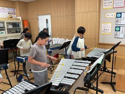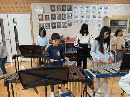 音楽発表会に向けて、練習を進めています。リズムや音色を確認しながら、何度も練習を重ねていました。