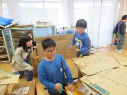 段ボールカッターの使い方に注意して、上手に使っていました。