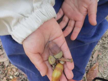 「秋をみつけよう!」ということでどんぐりを見つけたり,落ち葉を拾ったりして楽しみました。