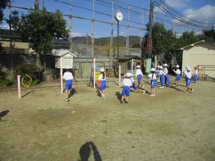そのあとはなげっこあそびとして、的を目掛けて投げる運動を楽しみました。