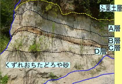 ・泥でできた層と、砂とれきが混ざっている層がありました。