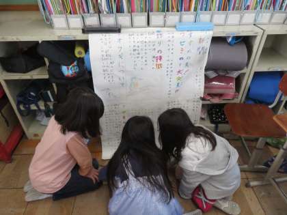 作った新聞やポスターを客観的に見直し、発表に向けての準備を始めました。