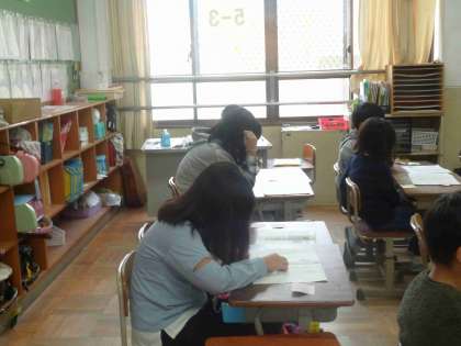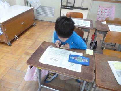 国語科の学習で書いた意見文を、学年全体で交流しました。他のクラスの仲間ものを読むことで、新たな刺激になったようです。