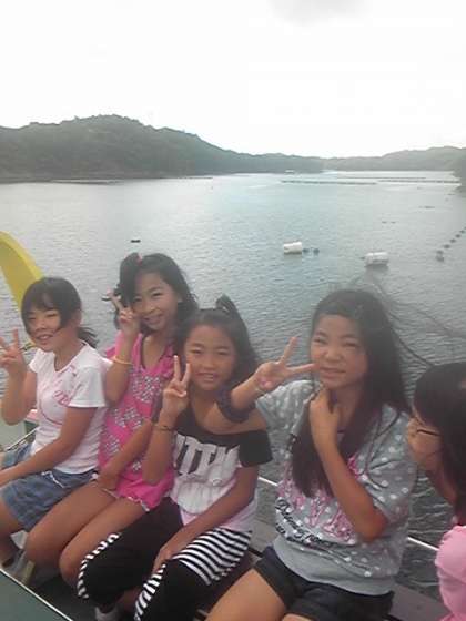 賢島でバスを降り,子どもたちは船に乗り換えました。お天気がよく,船の2階で海風を受けながら海上を進むのはとても気持ちがよく,「ずっとここにいたい」という子どももいるくらいでした。