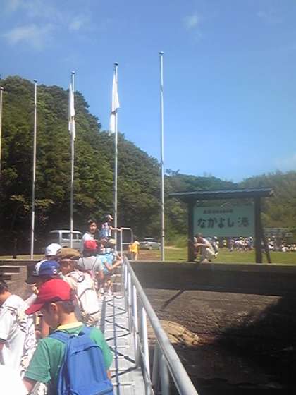 なかよし港に到着した子どもたち,この後昼食を食べて活動開始です。