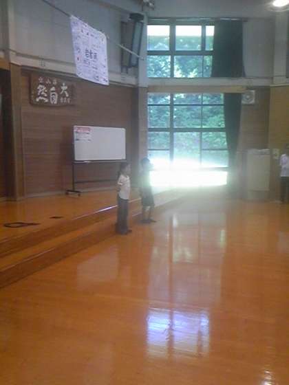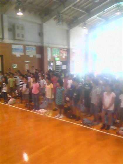 入所式は,誓いの言葉を言ったり,旗上げをしたりした後,暑さに負けずみんなで元気に校歌を歌いました。また,オリエンテーションで,みさきの家の職員の方から,シーツのたたみ方やいろいろな約束について教えていただきました。