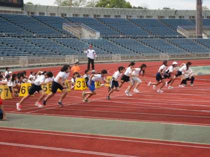 10/8(月・体育の日)京都市小学生陸上記録会が西京極陸上競技場及び補助競技場で行われました。京都市の小学校162校から約3000名の6年生が参加しました。本校からも男子100m,50mハードル,走り幅跳び,800m,女子100m,800m,そして,4×100mリレーに男女各1チームが出場しました。自己ベストを出す児童がたくさんいました。男子のリレーでは,6位入賞を果たし表彰されました。大変充実した記録会となりました。6年生を対象とした記録会は,今後,12月に駅伝記録会,1月に持久走記録会があります。いずれも鴨川1700m周回コースを走る大会です。運動をするには最適の季節となりました。これからも体力の向上をめざし,日頃から体を動かすように心掛けてほしいと思います。
