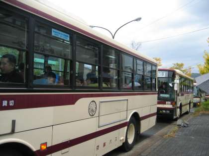 出発式を終えた子どもたちは,全員バスに乗込み笑顔で出発しました。