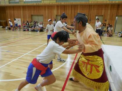 八瀬小学校の体育館で,なかよし運動会が行われました。