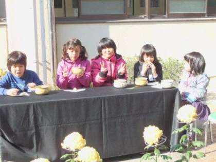 子どもたちにとっては,お茶の準備が忙しくて,落ち着いて秋を楽しむことはできなかったかもしれません。ですが,大好きな先生たちに喜んでもらい,
