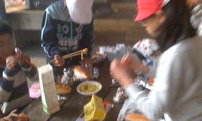 「おこげが苦かったけどおいしかった」「2個もパンを食べたので満腹」と口々に感想を話していました。
