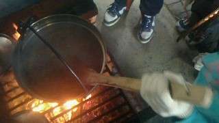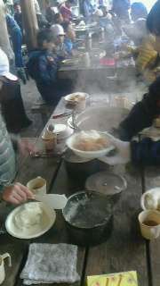 昼食のカレーライスを野外炊飯場で作りました。3回目で,みんな慣れてきたようで,ほぼ予定通りできました。味の方は,各グループそれぞれですが,みんなでおいしくいただきました。
