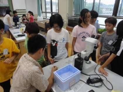 5年生の理科で「メダカの誕生」を学習します。本校では,毎年,地域にお住まいで,大学でメダカの研究をなさっている「メダカの先生(木下さん・中山さん)」がゲストティーチャーとして授業をしてくださいます。今年度もお世話になりました。教科書には載っていない岩倉のメダカについての話をしていただいたり,実際に水槽を泳ぐメダカを見せていただいたりして子どもたちは興味津々です。立派な顕微鏡で,産まれて間もないメダカの卵から,1日・2日・3日・・・と経過した卵の様子を見せていただき,変化の様子を観察することができました。「生命」って神秘的です。とても良い学習になりました。