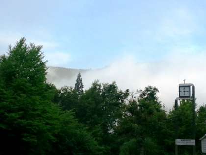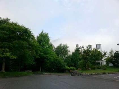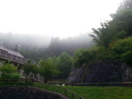 天候は,薄日が差して,山には霧がかかっています。