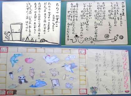 日々の授業研究に加えて,子どもたちの言語環境の充実と言葉や文章への興味・関心を高めること等を目的として,夏休み中に校内掲示板に「子どもたちが立ち止まって目を向けるサプライズ掲示」を用意しました。子どもたちの顔を思い浮かべながら,計画・作成している掲示板をぜひご覧ください。