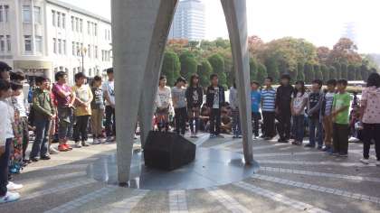 平和記念公園内の原爆の子の像前で集会係を中心に全員で平和のつどいをしました。