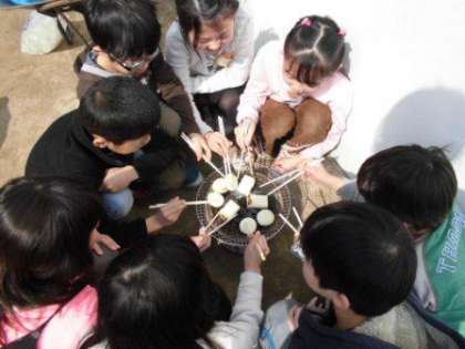 社会科「昔を伝えるもの」の学習の一環で,七輪を使ってお餅を焼きました。子どもたちは,今までの学習の中で,昔,使われていた道具について自分たちで調べたり,どのような使い方をしていたのかを家で聞いたりして学習を進めてきました。その学習の最後に,学校にある七輪を使ってお餅を焼く学習をしました。子どもたちは「七輪を使って,お餅は上手に焼けるかな」と楽しみにしていました。実際に七輪で火をおこす様子を見るのが初めての人もいて,みんな興味津々でした。網の上にお餅をのせる時,「どこに置いたらいいのかな」「これでちゃんと焼けるかな」と言いながら,お餅をひっくり返して焼き,少し焦げたお餅をいただきました。「いつもより美味しい!」「何だか香ばしい!」と,笑顔いっぱいでした。先人たちの知恵を知ることで「昔を伝えるもの」の学習が深められました。
