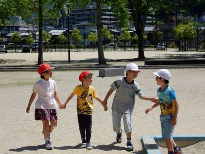 5月11日(月)に1・2年生と6組で宝ヶ池公園にある「子どもの楽園」に遠足に行ってきました。1年生にとっては,初めての遠足でみんなとっても楽しみにしていました。2年生も「1年生の友達と仲良くなれるように」という目標をもってしっかりとお兄さん・お姉さんとして遠足に行く前から準備を頑張っていました。