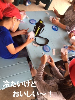 浦山ラリーが終わってかき氷タイムです。涼しいですが子どもたちはあちこち歩き汗をかいたらしく「おいしい」と言って食べていました。