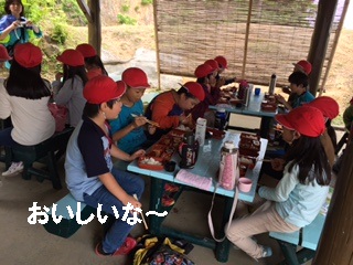 みんなで「いっせぇのーで」でお弁当のフタを開け「おー!」と歓声が上がっていました。