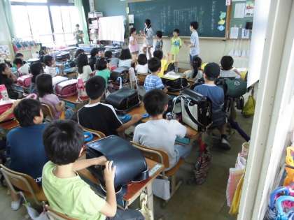 夏休みを前に,町別集会を行いました。地域校外委員さんとともに地域の子どもたちのつながりをつくること,いざというときに町内ごとに集まって集団下校ができるようにすることを目的に,年3回の町別集会を行っています。今回は2回目で,町内の危険な場所についてみんなで話し合ったり,地域校外委員さんに夏休みのラジオ体操について話をしていただいたりしました。