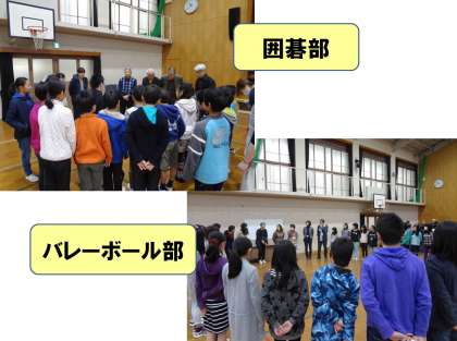 部活閉講式が3月14日(月)に行われました。地域や保護者の方や学校教職員の指導のもと,各部において子どもたちの技能が上達し,精神面が鍛えられ,運動部では,体力も向上したことと思います。また,大会や交流会などに参加することで,充実感や達成感を味わうことが出来ました。