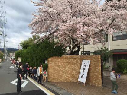 今年の入学式は,暖かい入学式になりました。校門の桜も満開になり新1年生を祝福してくれました。