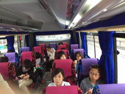 バスで昼食です。この後,平和公園に行きます。雨があがってくれるかな?